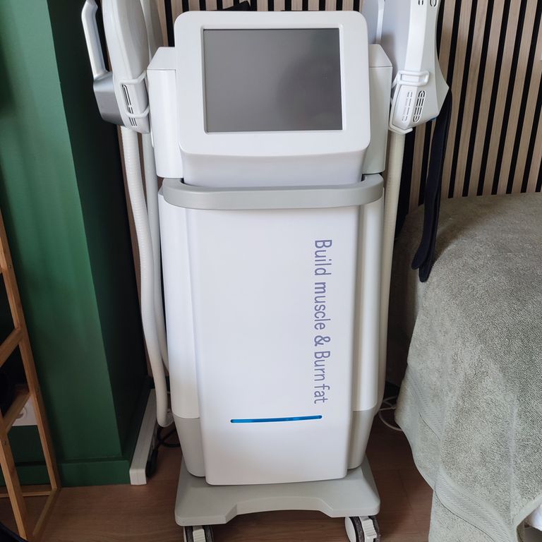 - utilise des ondes électromagnétiques qui traversent le corps de façon non invasive et génère des contractions musculaires automatiques, ce qui amène les muscles à utiliser la graisse pour se fournir de l’énergie