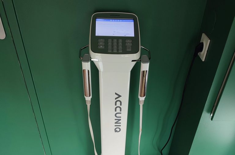 A chaque consultation, j’utilise l’impédancemétrie InBody. Cet équilibre est équipée d’électrodes sous les pieds et au niveau des mains qui envoient un (faible) courant électrique dans votre corps.